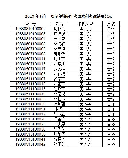 根据《关于做好2019年高职院校五年一贯制单独招生考试全省统考考务工作的通知》(粤招办普[2019]22号)的要求,4月14日我院组织报考音乐教育、美术教育、体育专业考生参加术科考试。下列考生获得术科考试合格资格,现予以公示(名单详见附件)。公示时间为2019年4月16日上午8:30-4月22日17:30,如有异议,请电话或书面向必赢线路检测中心招生办公室反映。