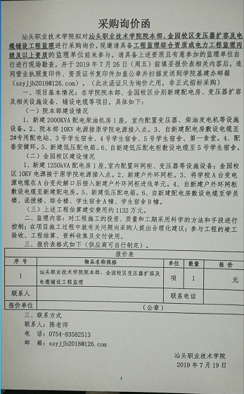 院本部、金园校区变压器扩容及电缆铺设工程采购询价函