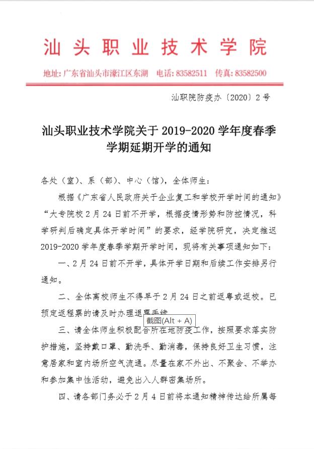 必赢线路检测中心关于 2019-2020 学年度春季学期延期开学的通知