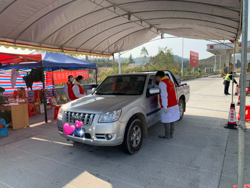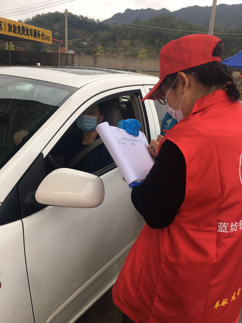 (刘晓燕在检查点协助社区测量来往人员体温)