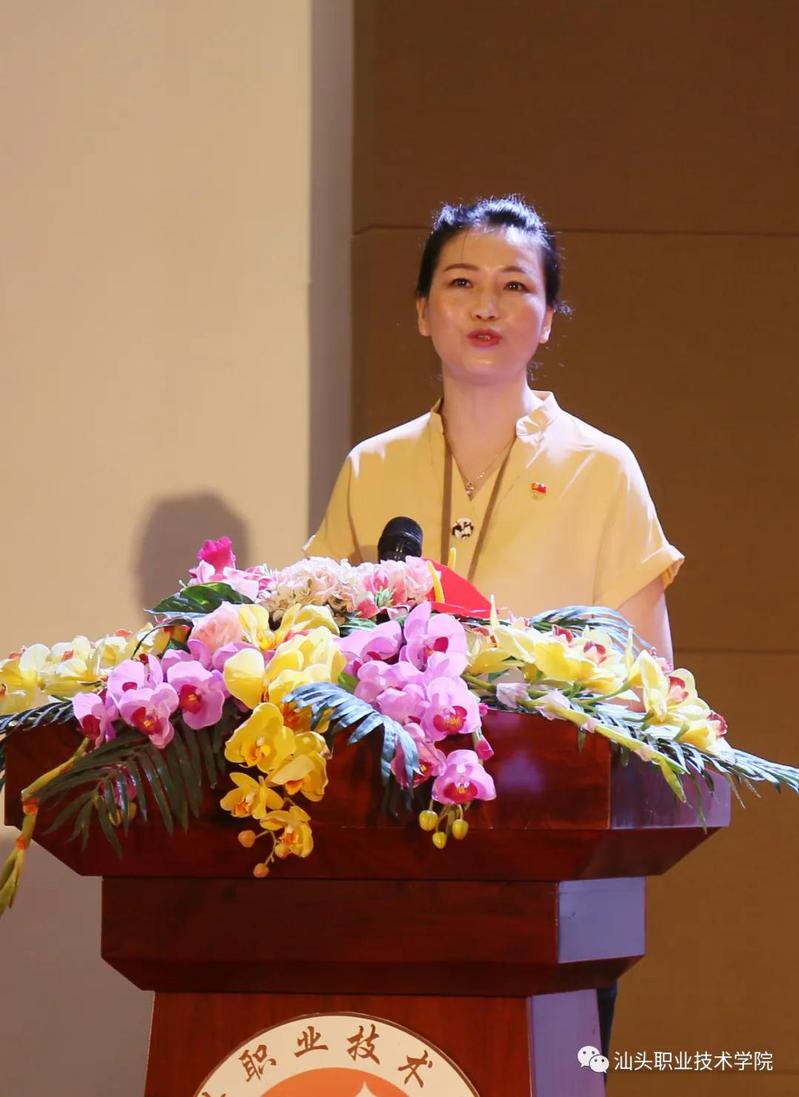 教师代表、经济管理系副主任潘丽辉老师发言。她引用清代纪晓岚“心心在一艺,其艺必工;心心在一职,其职必举”勉励学生,在有限的时光里要竭尽全力把自己从事的工作做到精致做到完美,从而成就一番事业,实现人生价值。