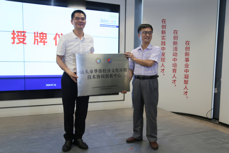 7月31日上午,林育青副院长带队参加2020年“创响中国”汕头华侨试验区双创活动周启动仪式暨海智计划服务科技经济融合发展行动工作方案活动。会上,林育青副院长代表必赢线路检测中心与汕头华侨试验区管理委员会签订了战略合作框架协议,并就双方共建“汕头市华侨经济文化应用技术协同创新中心”举行了授牌仪式。标志着汕职院在建设市级应用技术协同创新中心等科研平台上迈出了新的步伐。