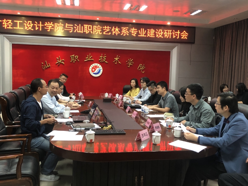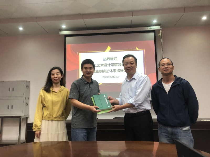 2020年10月24日,广东轻工职业技术学院(下称广轻工)艺术设计学院副院长徐禹、党政办公室主任张锡莹及产品艺术设计等多个省级专业群负责人及专家一行14人莅临我院艺术体育系系开展专业建设及文创开发学术交流活动,交流会在金园校区会议室召开,由艺体系党总支副书记詹剑涛主持。