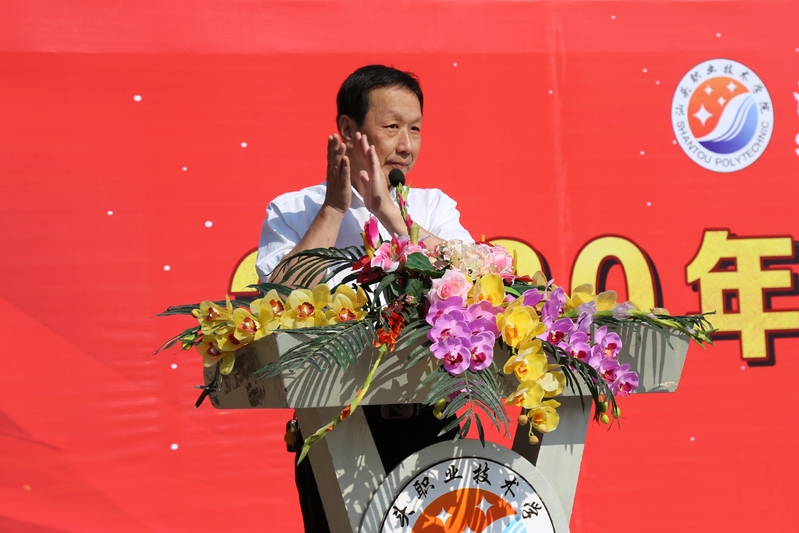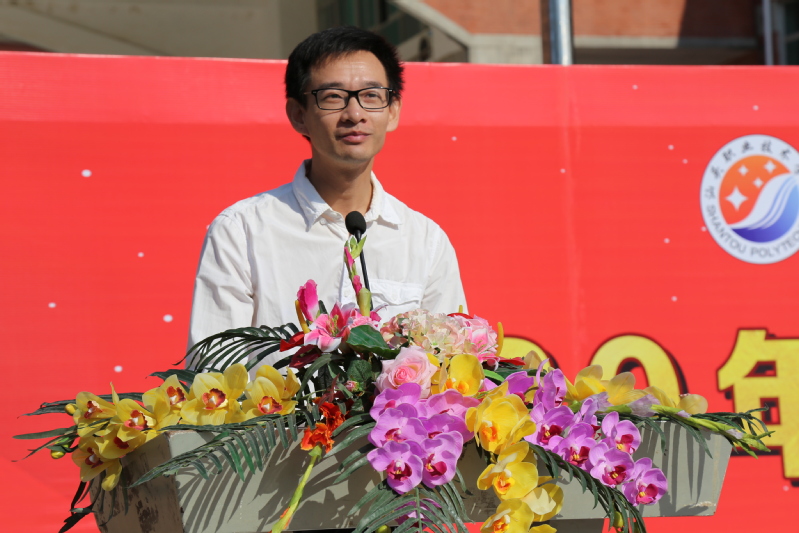 学院校友代表吴政伟在发言中分享了在汕职院的收获,希望师弟师妹们勇于挑战自我、勤俭治学,小我融入大我。