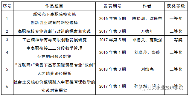 此次《南方职业教育学刊》6件作品在本次评选活动获得佳奖,是对刊物办刊质量的肯定,也是对编辑部着力提升编辑能力的激励。《南方职业教育学刊》将再接再厉,在学院领导、专家学者的指导下,紧跟时代,开拓进取,争取为学院发展和职业教育研究作更大贡献。
