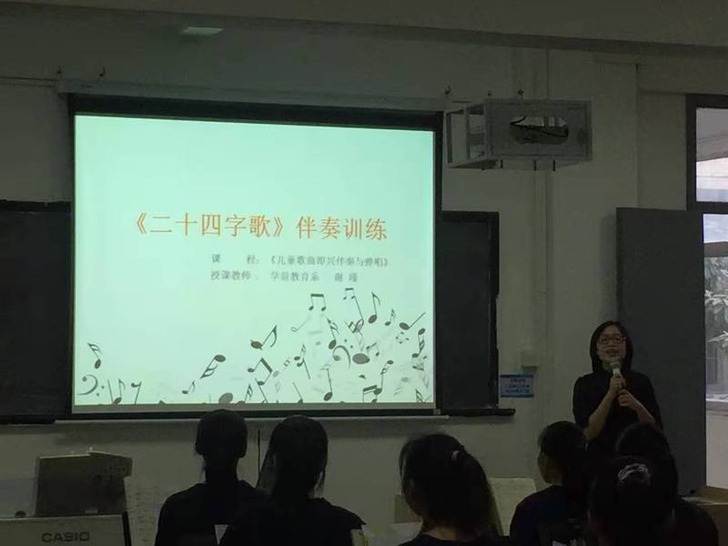 为深入贯彻落实习近平总书记关于教育的重要论述和全国教育大会精神,贯彻落实中共中央办公厅、国务院办公厅《关于深化新时代学校思想政治理论课改革创新的若干意见》,把思想政治教育贯穿人才培养体系,全面推进高校课程思政建设,根据《必赢线路检测中心“课程思政”建设实施方案》要求,学前教育系积极开展课程思政教学改革,于11月5日下午举办了2场校级公开课教学活动:谢瑾老师的《<二十四字歌>弹唱训练》和许英玉老师的《<书愤>赏析》,分别从技能实训课和文化基础课两种不同类型的课程,对课程思政建设进行了探索。