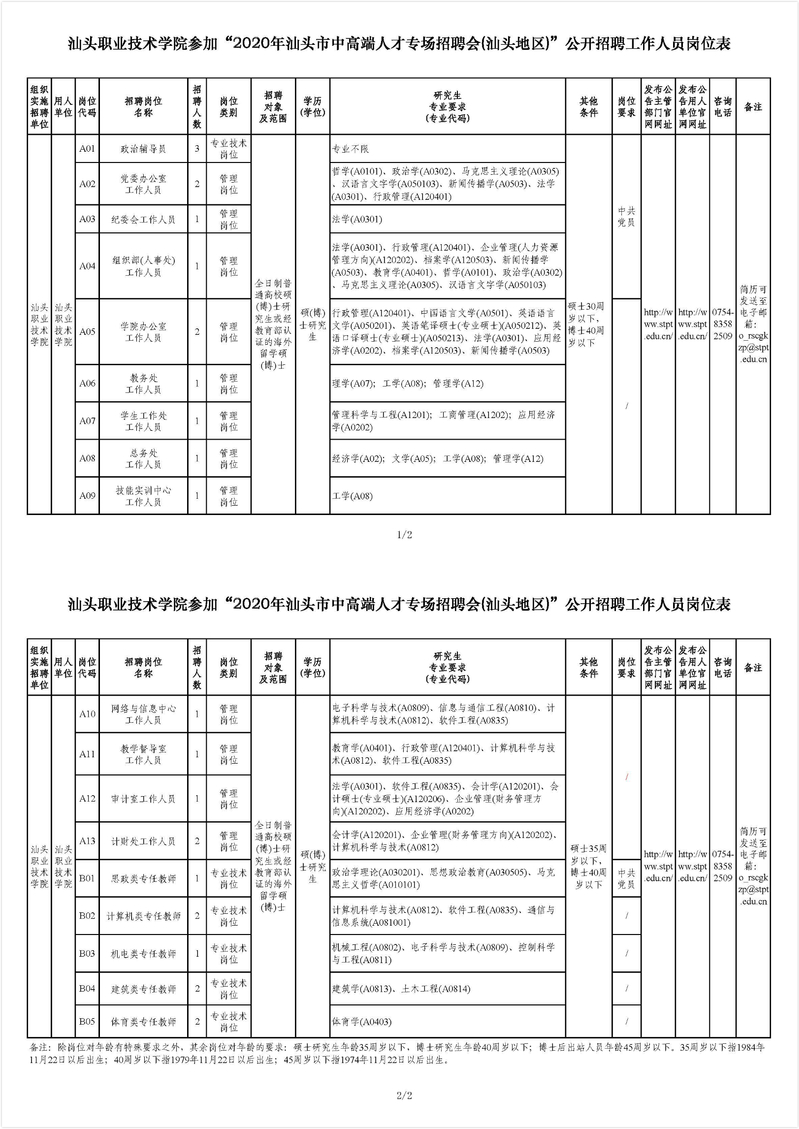 根据市委组织部、市人力资源和社会保障局发布《汕头市事业单位参加“2020年汕头市中高端人才专场招聘会(汕头地区)”公开招聘公告》相关要求,按照《广东省事业单位公开招聘人员办法》(广东省人民政府令第139号)、《汕头市事业单位公开招聘人员实施细则(暂行)》(汕市人〔2009〕269号)和《汕头市事业单位公开招聘紧缺人才有关问题的实施细则》(汕人社〔2019〕143号)等有关规定,我院因工作需要,拟公开招聘教职工26名。具体招聘公告如下: