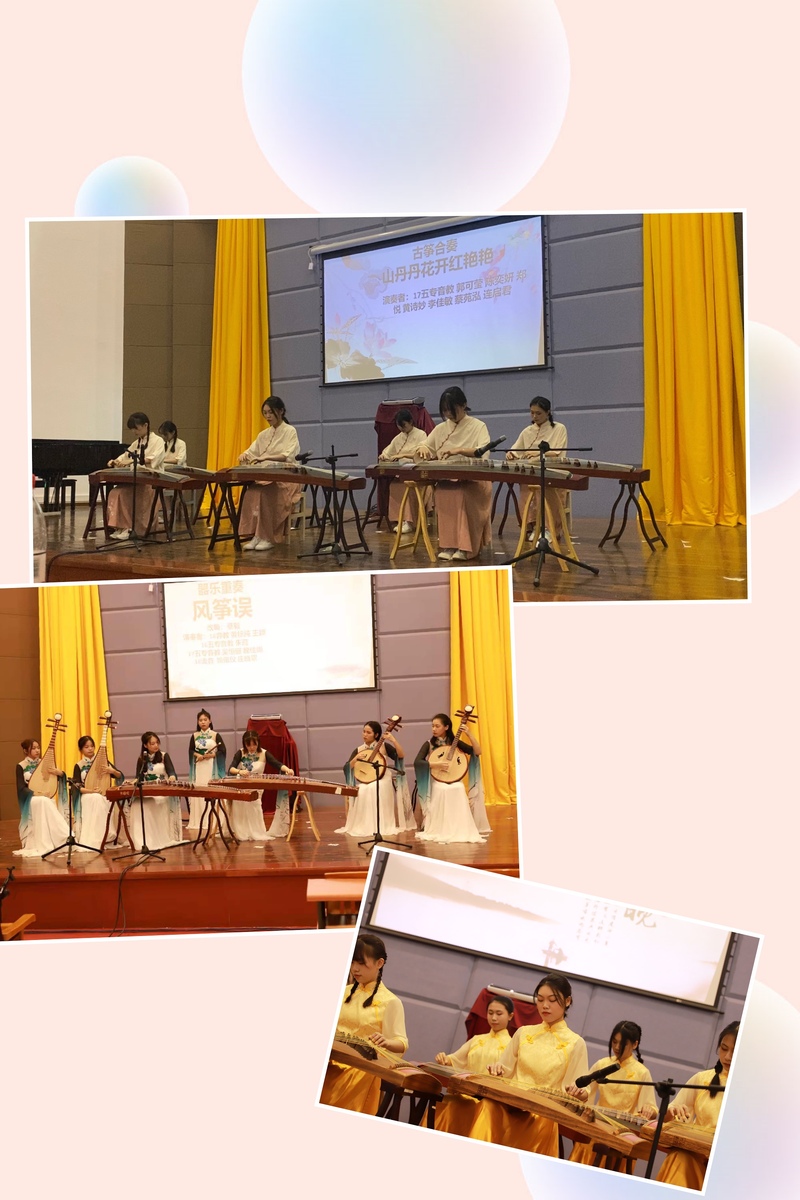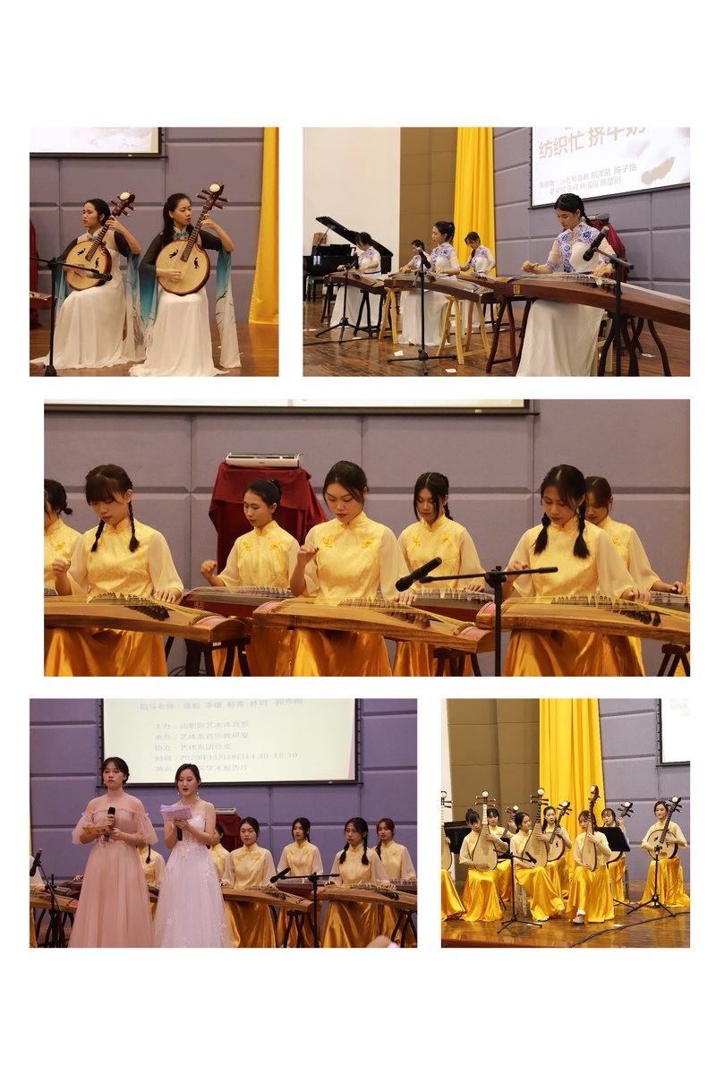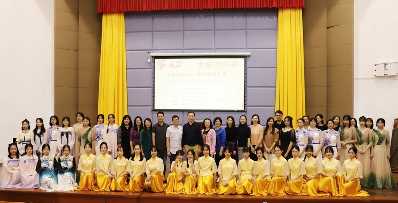 筝心--古筝音乐会暨《潮州音乐》课程思政汇报近日在学术报告厅成功举行,出席音乐会的领导有团委书记陈锦莹,艺术体育系主任陆小兵,副主任周小酉,学生科科长郑传炫,音乐教研室主任李曙及音乐教研室的老师们。
