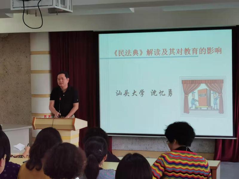 沈教授对《民法典》的编纂历程与意义、《民法典》的结构和内容进行了介绍,使师生们初步把握《民法典》的精神内核,明确法律赋予的权利及义务,增强了尊崇法律、敬畏法律,遵守法律的意识。沈教授旁征博引,用生动的案例解读了《民法典》中许多新的亮点,理论联系实际,通过生活实例告知我们,人生的每一步,几乎都浓缩在民法典里,每一个民事行为基本上都与民法典息息相关。沈教授还深入解读了民法典对教育的影响,指出民法典时代对教育、特别是学校教育提出了新的命题,需要学校教育作出回应,使师生们更明确了“人格权”“隐私权和个人信息保护”等问题,认识到学校、家庭和社会有义务在保障受教育者的人身自由、人格尊严的基础上,保障其接受安全、公平、可选择和高质量的教育,学校和教师应具有法律思维习惯,在学校教育教学和管理过程中遵循学生法律地位的平等性、学生主体意识的自主性以及权利义务的一致性等基本原则,并依据民法典中的具体规则处理好学生与学生之间、学生与教师之间、学生与学校之间的人身关系和财产关系。