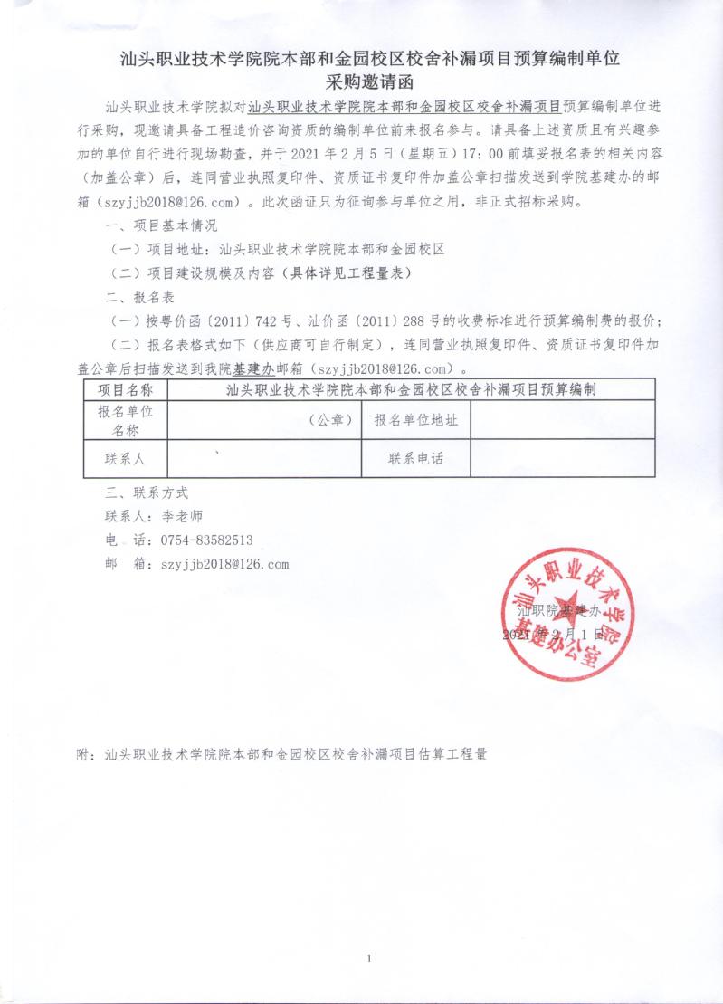 院本部和金园小区校舍补漏项目预算编制单位采购邀请函