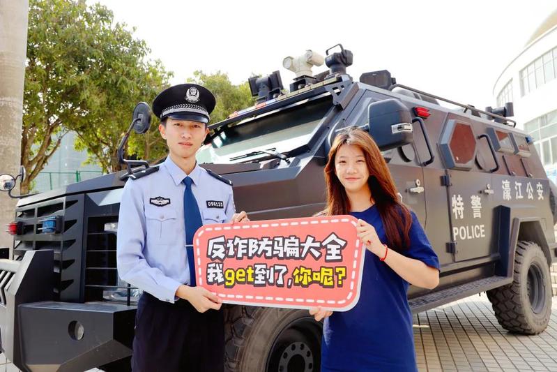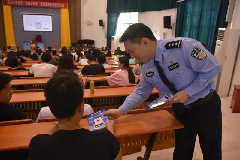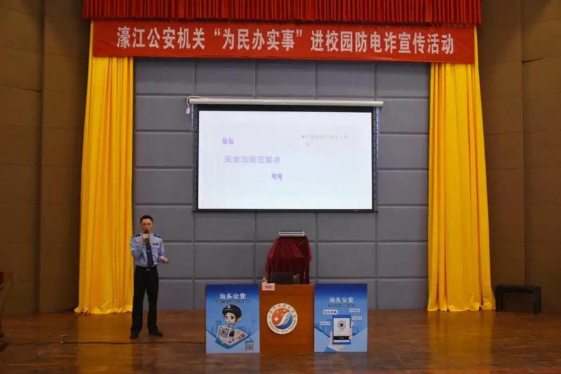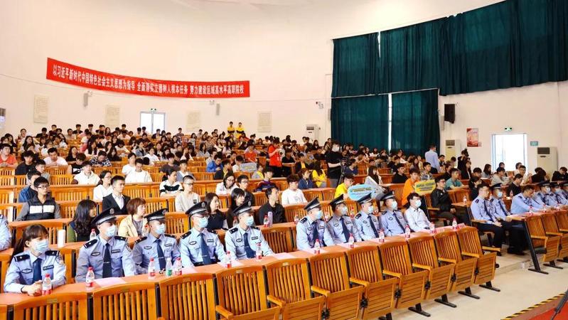4月15日下午,濠江公安分局联合市公安局反诈中心、宣传科来到我院举办进校园宣传活动,通过开讲座、签名仪式、咨询互动等丰富活泼的形式,为在校师生开展反诈等安全防范知识宣传。学院党委委员、副院长陈庭照出席活动。