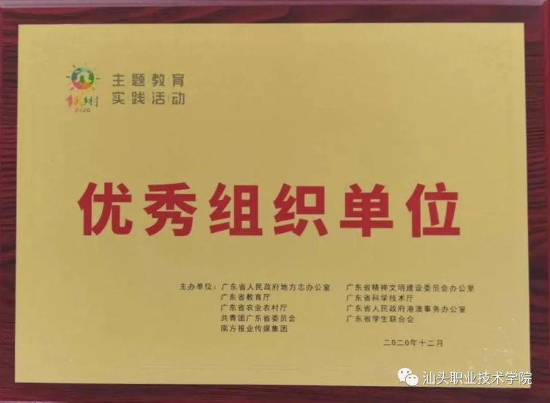 学院团委、学生处联合荣获广东省2020年多彩乡村主题教育实践活动优秀组织单位称号