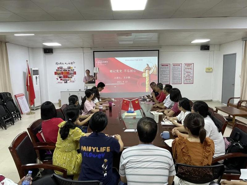随后,方小铁副书记从“一百年的奋斗史、不忘入党初心牢记党员身份、时刻不忘感党恩、一心一意跟党走”四个方面进行详细讲解,带领大家回顾了中国共产党走过的辉煌历程,缅怀党的丰功伟绩,阐述了中国共产党成立之初的艰难发展历史,生动再现一个个历史真实案例,强调中国共产党发展至今所取得的成绩来之不易。要求全体党员师生要认真深入的学习党史,把对党的绝对忠诚落实到一言一行、体现在一点一滴、贯穿于一生一世。此次专题党课,是一堂生动的党史学习教育课,一场深刻的思想洗礼课,全体党员学有所获、学有所悟。大家纷纷表示,要以此次专题党课为契机,深刻领会准确把握中国共产党党史内容的精神实质,做到学史明理、学史增信、学史崇德、学史力行。为党育人、为国育才,不忘从教初心、牢记育人使命,坚持立德树人根本任务,以永不懈怠的精神状态和一往无前的奋斗姿态努力为党和国家培养时代新人作出更大贡献,以优异成绩向建党100周年献礼。