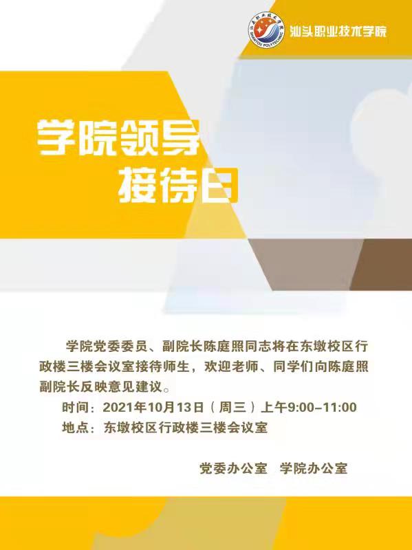 (三)副院长陈庭照于 10 月13 日(星期三)上午9:00-11:00 在东墩校区行政楼三楼会议室开展接待日活动。
