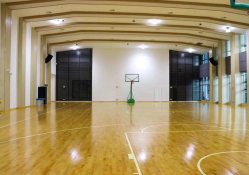穿过一条条小道,展现在眼前的是一间篮球训练馆,参差不齐、相互交错的观众席围绕着整间训练馆,错落有致的摆设配上点点灯光,给篮球训练馆增加了一份神秘。