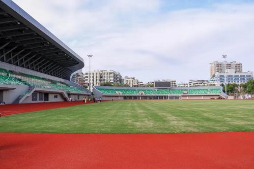 春意盎然的景象浮现在同学们的眼前,诺大的田径场,排满迷彩绿的观众席,参差不齐的座位椅营造着交错美。