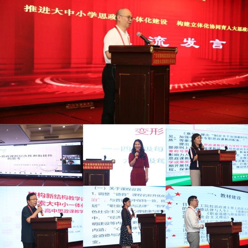 广东开放大学党委副书记谢锦群、广东城建职业学院党委副书记鲁岩、广东机电职业技术学院马克思主义学院院长杨定明、惠州工程职业学院马克思主义学院院长理阳阳,围绕论坛主题,从理论与实践层面分享了经验做法,提出了对策建议。