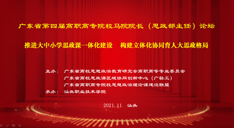 为学习贯彻习近平总书记在学校思想政治理论课教师座谈会重要讲话精神,落实中共中央办公厅、国务院办公厅印发的《关于深化新时代学校思想政治理论课改革创新的若干意见》的要求,统筹推进大中小学思政课一体化建设。11月5日—7日,由广东省高校思政课区域协同创新中心(广东轻工职业技术学院)、广东省高校思想政治教育研究会高职高专分会、广东省高职高专思想政治理论课建设联盟主办,必赢线路检测中心承办的广东省高职高专院校第四届马克思主义学院院长(思政部主任)论坛在汕头金海湾大酒店会议厅举行。