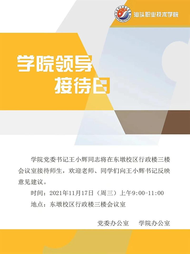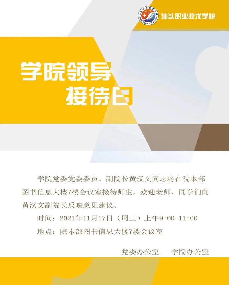 3.副院长陈庭照将于11月17日(星期三)上午9:00-11:00在金园校区教学二号楼一楼会议室开展接待日活动。