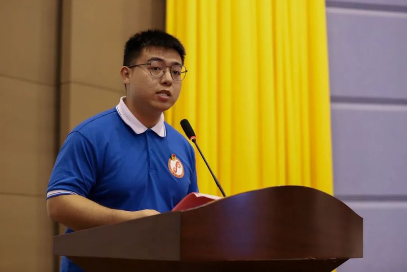 颁奖结束后,机电工程系2020级智能产品开发与应用专业2班肖添太作为团员代表、艺术体育系体育专业教研室青年教师钟昭金作为青年教师代表分别发言。
