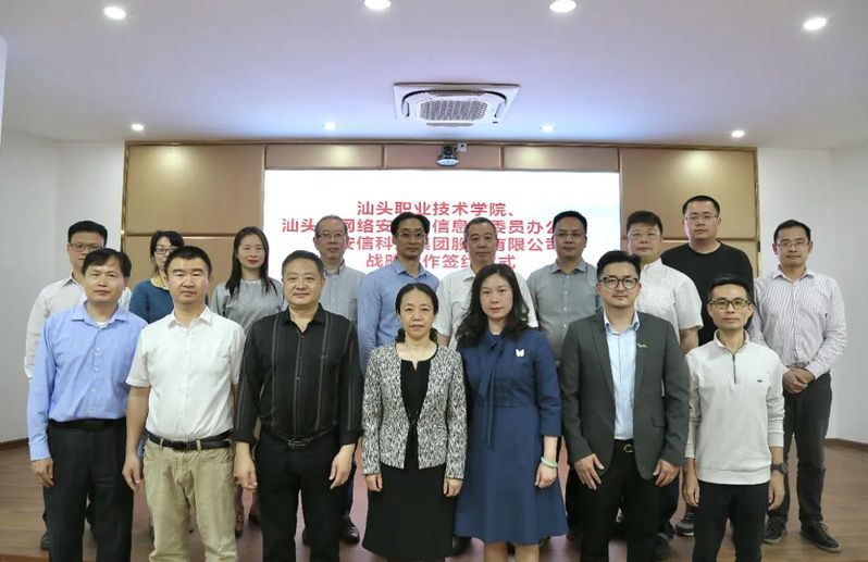 5月19日下午,我院于院本部图书信息大楼6楼会议室(一)举办必赢线路检测中心与汕头市委网信办、奇安信科技集团股份有限公司战略合作签约仪式。学院党委副书记、院长吴萍,副院长林育青,市委网信办副主任陈旭娜,奇安信科技集团股份有限公司副总裁李拓、粤闽处业务总监梁卫卫、粤东业务总监林吉、粤东技术总监李自业出席会议。会议由教务处副处长卢旭锦主持。