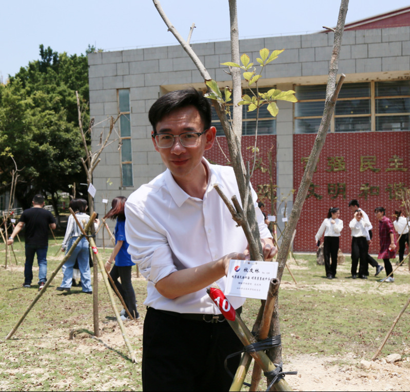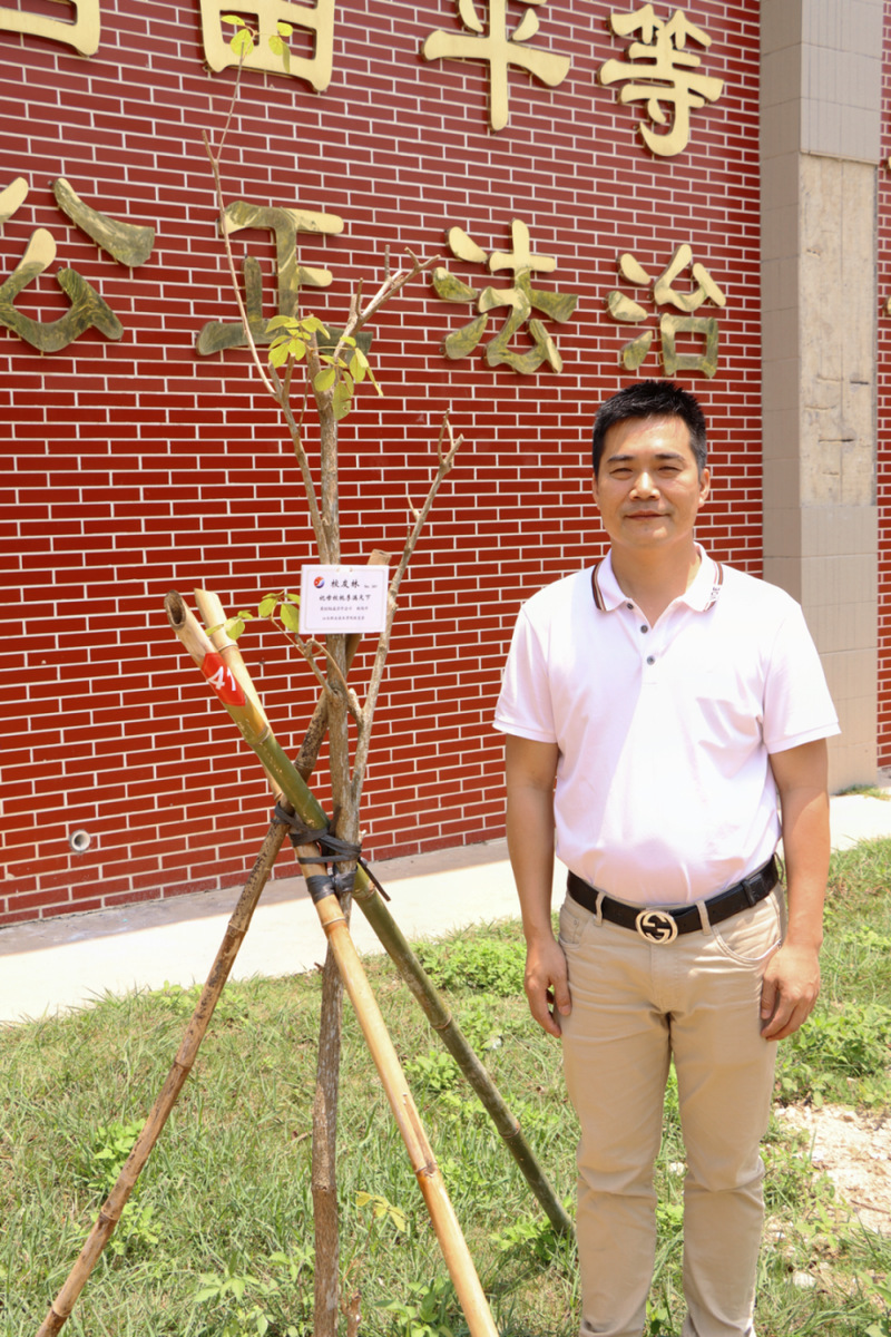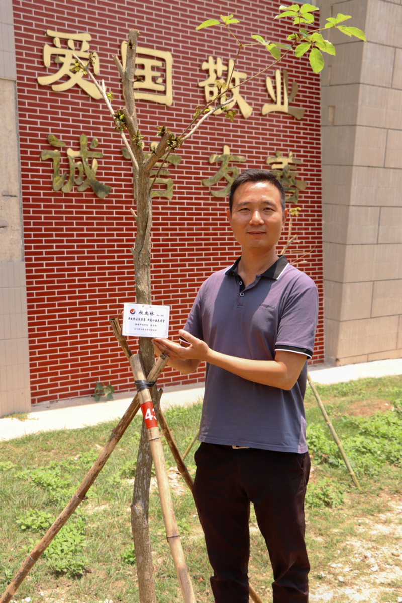 活动最后,学院领导、校友代表及师生代表一同为“校友林”挂上爱心认养铭牌。