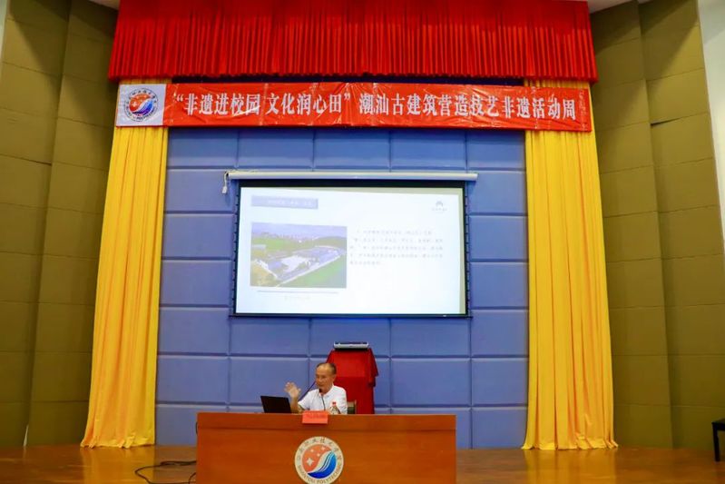 5月30日下午,由我院经济管理系和广东纪传英古建筑营造有限公司(以下简称“纪传英公司”)联合举办的“非遗进校园 文化润心田”潮汕古建筑营造技艺非遗活动周活动在纪传英大师的专题讲座中拉开帷幕。学院副院长林育青出席讲座。