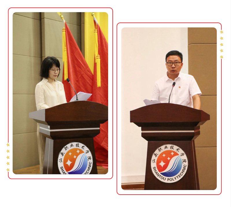 优秀共产党员代表、外语系党总支第二党支部书记丁灿波在发言中表示,“没有波澜壮阔,只有持之以恒;没有惊涛骇浪,只有水滴石穿”,在职业教育这片热土,我们牢记“为党育人为国育才”职责使命,努力培养堪当民族伟大复兴重任的时代新人;我们贯彻“三全育人”,在各自岗位上辛勤耕耘,倾情奉献;我们坚持“立德树人”,立志做“经师”和“人师”的统一者,帮助学生树立正确的世界观、人生观和价值观。