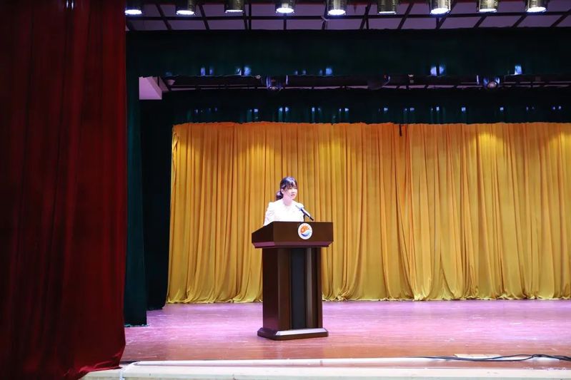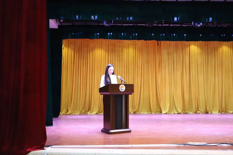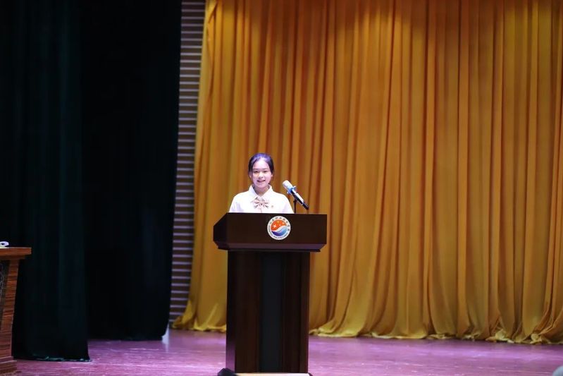 仪式开始,全体高唱国歌。在观看2021年实践活动回顾视频过后,实践活动学生代表许舒桐同学和教师代表张珣老师依次发言。