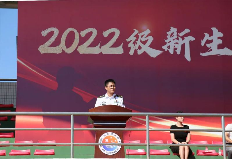 濠江区人民武装部上校部长杨广超为2022级新生作军训动员,向全体参训人员提出以下四点要求,一是提高认识,端正态度;二是遵守纪律,听从指挥;三是尊重教官,虚心学习;四是劳逸结合,安全第一。