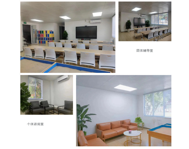 新建成的两处中心,均是根据心理健康教育的专业需求设计,设有专业标准的各功能室,如咨询室、心理测评室、减压放松室、团体活动室、多功能活动室等,并配置心理自助系统、心理测评系统、心理减压系统、团体活动器材等专业设备,内部环境优美宜人,可以进行个体心理咨询、团体心理辅导、团体活动、心理健康培训等专业活动,为学院服务学生、服务社会提供了高品质的场地支撑,为学院双高院校建设出成果添砖加瓦。