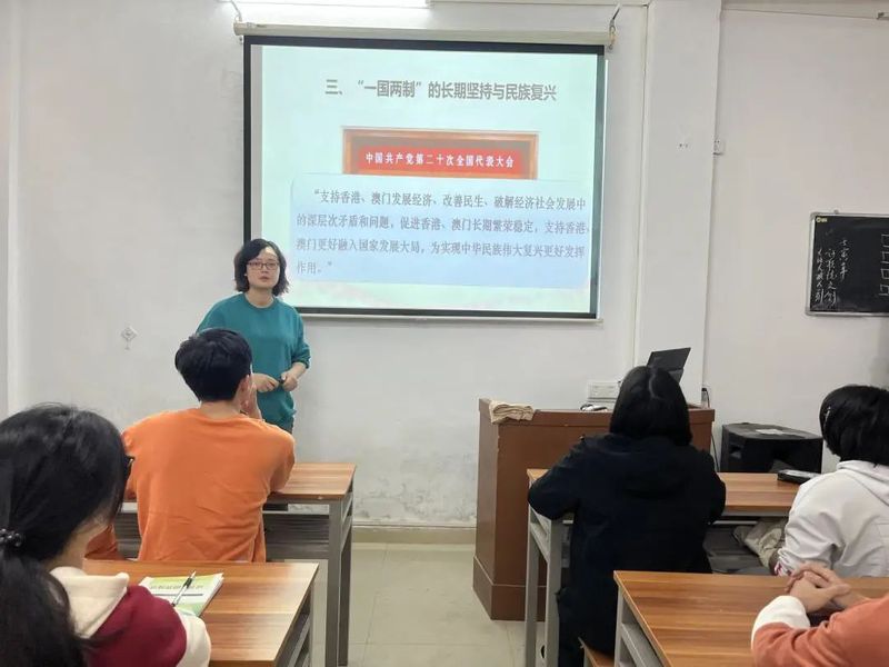 编者按:为切实把党的二十大精神及时、准确、系统、全面地学习宣传贯彻到学生,让党的二十大精神进校园、进课堂、进头脑,发挥思政课落实立德树人根本任务的关键课程作用,增强学生学习主动性、历史责任感,11月以来,学院马克思主义学院全体思政课教师积极行动,通过教师主讲、学生参与的形式,将党的二十大精神融入课堂教学,并在校内外开展宣讲活动。