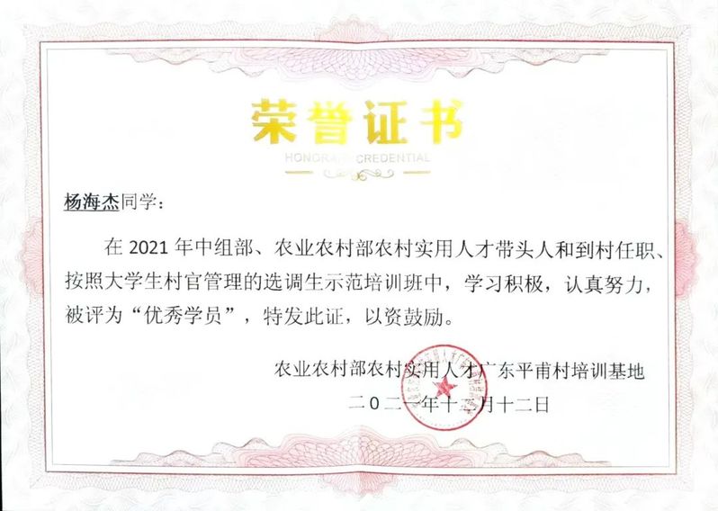 在广东省青年创业就业基金会联合相关单位举办的2022年“领头雁”广东大学生乡村创业帮扶计划中,杨海杰校友作为南澳乡振农场负责人,其示范项目获得了中国青年创业就业基金会直接资金资助。以“公司+农户”模式助力乡村、振兴农场。志力为南澳乡村振兴事业贡献一份青春力量。