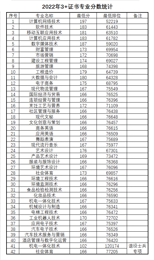 附:2022年春季高考录取分数统计(志愿填报参考)