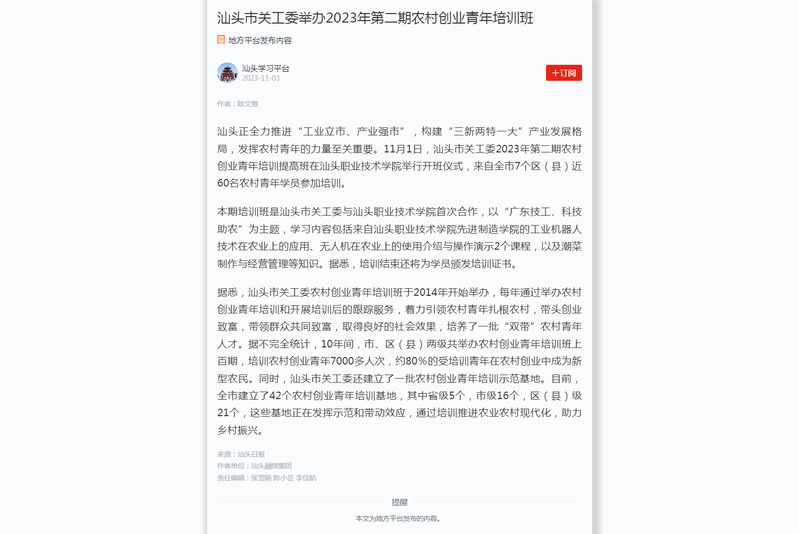 汕头市关工委举办2023年第二期农村创业青年培训班