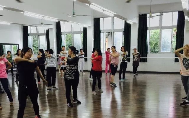 2017年10月26日下午,工会、妇委会在金园校区舞蹈室举办女教职工广场舞健美操培训班。广场舞健美操以《载歌载舞》为背景音乐,动作欢快活泼,运动量较大。女教职工们在梁薇老师的指导下,随着音乐的节拍踢腿、转圈、扭臀、摆腰,现场弥漫着快乐的气氛。