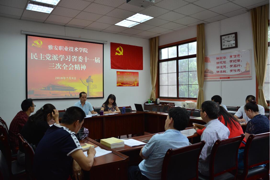 【本网讯】7月9日下午,宣传统战部组织民盟雅职院支部、民盟雅职院附属医院支部、民建雅职院支部的支委,在育才路校区B210会议室,专题学习了省委十一届三次全会精神。党委副书记付洪涛、宣传统战部负责人参加了学习...