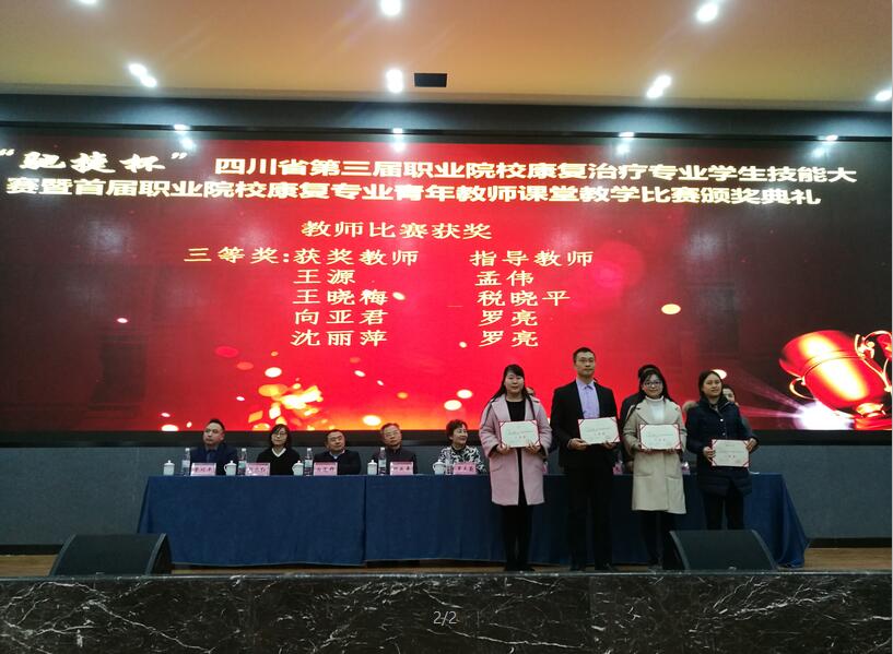 【本网讯】2018年11月23日,我院康复治疗技术专业教师王源参加了四川省首届职业院校青年教师课堂教学比赛,并获得三等奖,孟伟老师获得优秀指导教师奖。 此次大赛由四川省康复医学会康复治疗教育专委会主办,四川卫生...