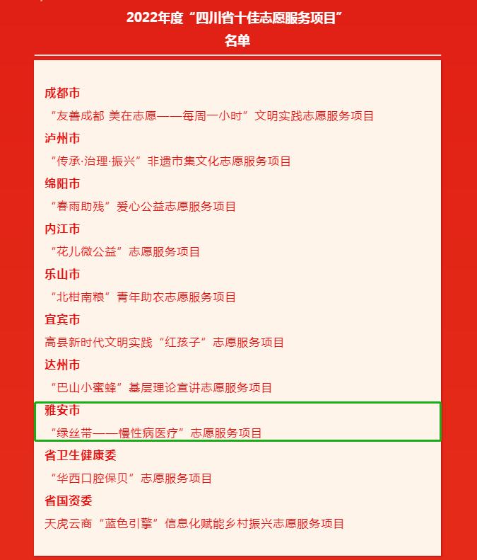 11-19-2022学院“绿丝带——慢性病医疗”志愿服务项目获评四川省十佳志愿服务项目