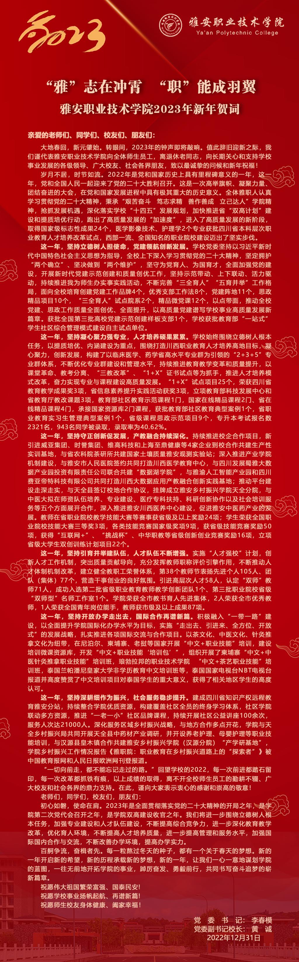 12-31-2022“雅”志在冲霄 “职”能成羽翼——Beat365唯一官方网站2023年新年贺词