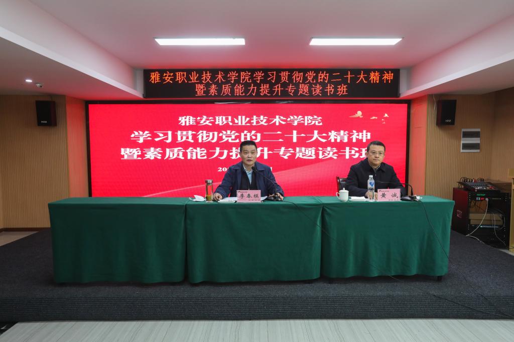 1月9日至10日,学院党委在青年路校区实训中心6楼多功能厅举办学习贯彻党的二十大精神暨素质能力提升专题读书班。读书班为期两天,采取专题授课、分组研讨的形式,旨在深入学习贯彻党的二十大精神、四川省委十二届二次全会精神、雅安市委五届二次全会精神,更好地坚持好运用好贯穿党的创新理论的立场观点方法,切实提高广大领导干部的素质能力水平,有力推动上级决策部署和学校工作安排落地落实,以优异成绩迎接学校第二次党代会...