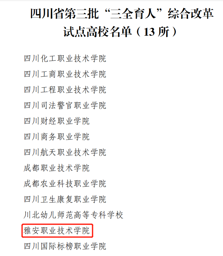 01-19-2023喜讯:我校入选四川省“三全育人”综合改革试点高校