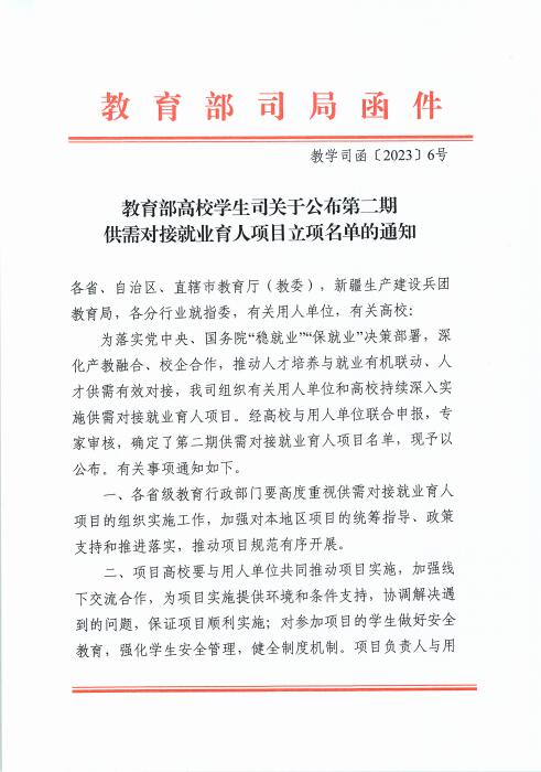 04-13-2023学院3个项目获批教育部第二期供需就业育人项目立项