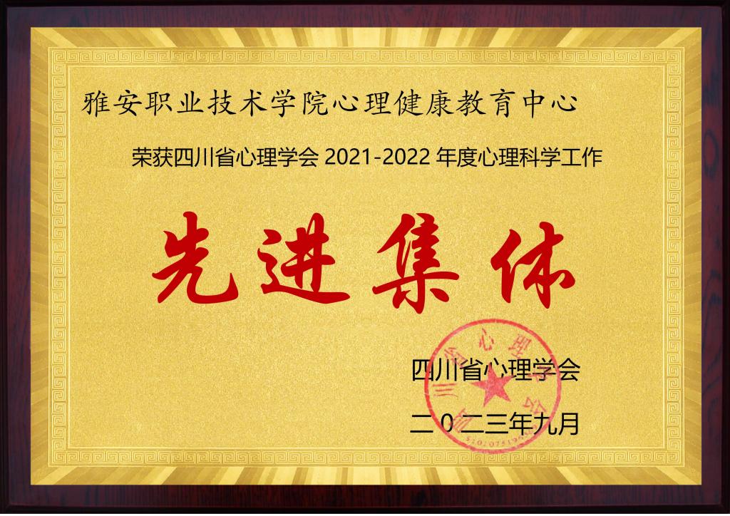 09-26-2023学院心理健康教育中心荣获四川省心理学会2021-2022年度心理科学工作先进集体