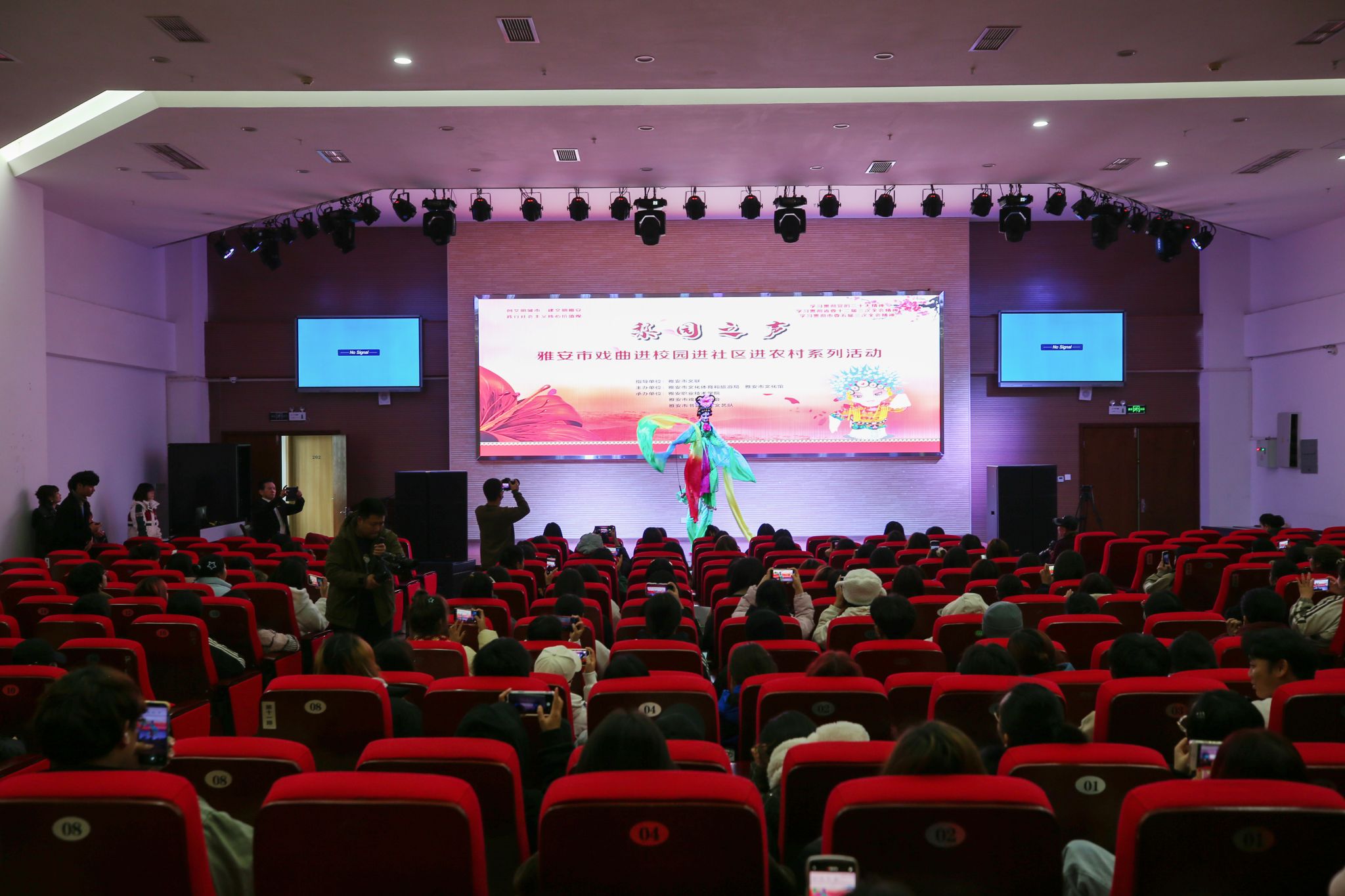 为深入学习贯彻习近平文化思想,弘扬中华优秀传统文化,丰富和提升校园文化内涵,打造学院文化特色,11月21日下午,在雅安市文联指导下,由雅安市文化体育旅游局、雅安市文化馆主办,Beat365唯一官方网站、雅安市戏剧家协会、雅安市书香龙溪文艺队承办的“梨园之声”戏曲进校园活动在学院青年路校区护理实训楼圆弧大厅举行。随着婉转的伴奏音乐响起,精神饱满、身着精美戏服的戏曲演员,迈步走上舞台精彩亮相。黄梅戏选段《对花》...
