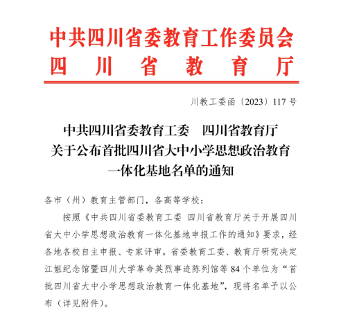 01-05-2024学院入选首批四川省大中小学思想政治教育一体化基地名单