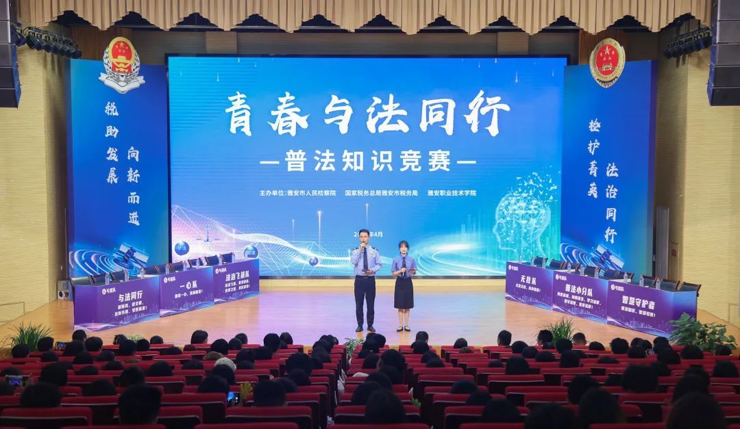 为深入学习贯彻习近平法治思想,进一步加强校园法制教育工作,增强同学们的法律意识和法制观念,提高法律知识水平,营造文明和谐的校园环境,4月26日,我校联合雅安市人民检察院、雅安市税务局在经开区校区聚雅厅举办“青春与法同行”普法知识竞赛。雅安市人民检察院检察长范文清、雅安市税务局局长罗强、学校党委书记李春模、党委副书记杨洪媛,各职能部门负责人、教师代表、学生代表和参赛队伍队员共计400余人参与。活动伊始...
