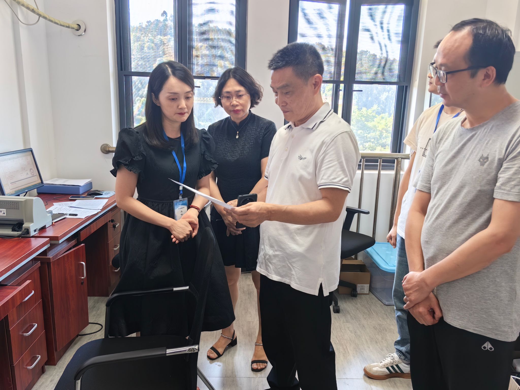 8月12日上午,学校党委书记李春模,党委常委、纪委书记张军,党委常委、工会主席夏安琼到学校招生录取现场调研指导2024年招生录取工作,并开展“夏送清凉”慰问活动,学校党政办公室、工会办公室负责人陪同调研。招生就业处处长高运荣对校领导的亲切慰问表示感谢,并详细汇报了我校招生录取工作的进展情况。李春模与招生工作人员进行了深入交流,他细致询问了招生工作的具体安排、录检工作的最新进展、关键时间节点与重要程序,...