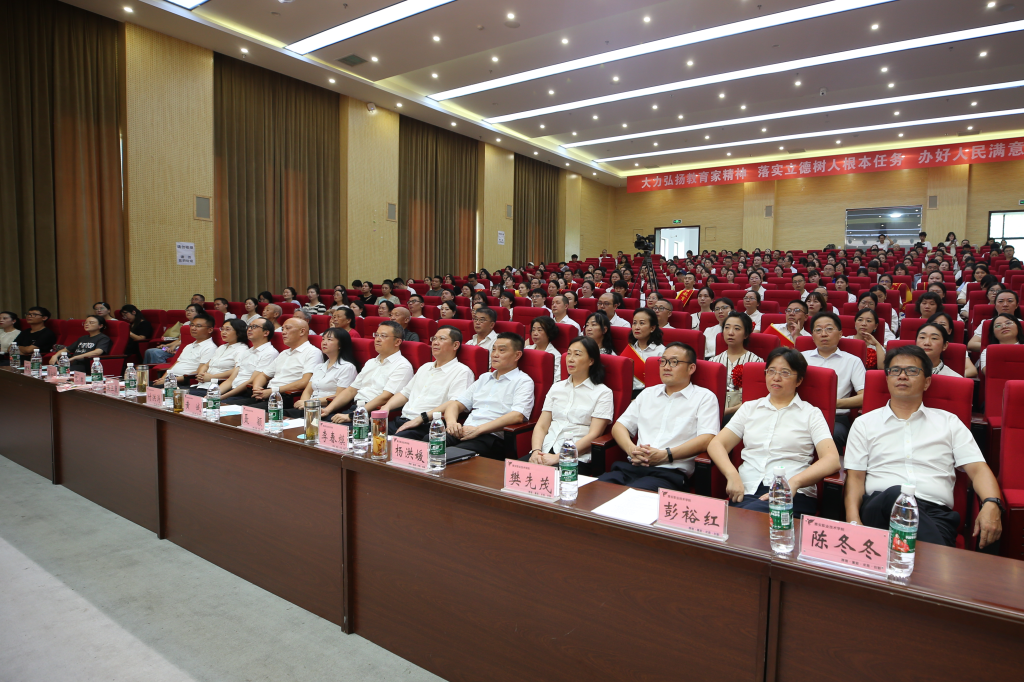 教育是国之大计、党之大计,教师是立教之本、兴教之源。9月10日下午,学校在经开区校区聚雅厅举行第40个教师节庆祝大会,致敬荣休教师、表扬先进典型、喜迎新进教师,共同欢庆这个光荣而神圣的节日。市委常委、宣传部部长聂颖,学校党委书记李春模,党委副书记、校长黄诚等领导班子出席大会。中层干部代表,荣休教师代表、荣获各级各类奖励的先进集体和个人、一线教师代表等共300余人参加大会。大会在退休教师代表宋文林、入职30...