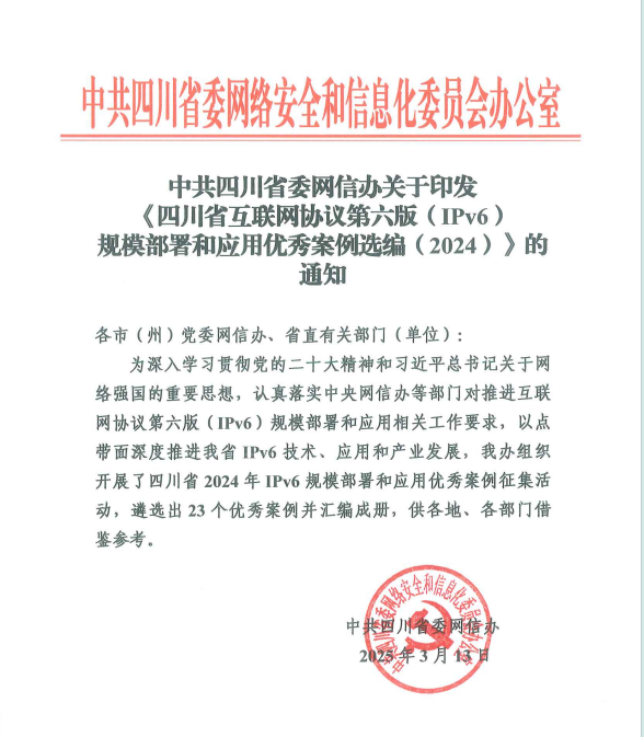03-14-2025我校获评四川省2024年互联网协议第六版(IPv6)规模部署和应用典型案例